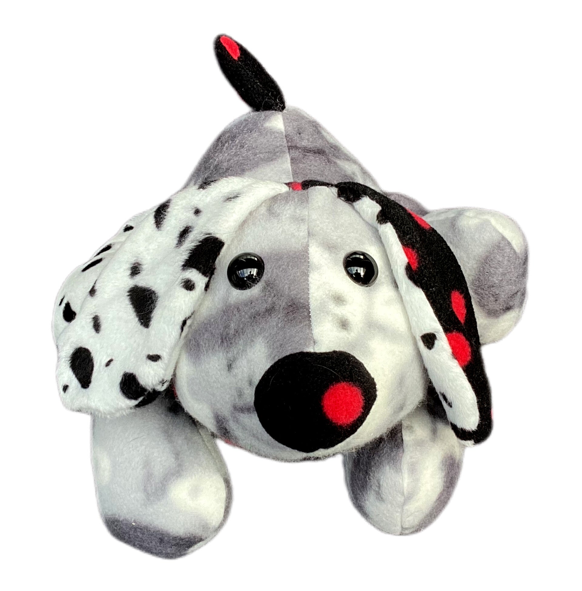 Puppy Pete bestaat uit verschillende fleece stofjes, waaronder 2 dekentjes. Je kan er ook voor kiezen om overhemden, andere kleding of T-shirts te gebruiken. Een combinatie is ook mogelijk. Of je gaat voor nieuwe patchworkstofjes. In overleg is er veel mogelijk.