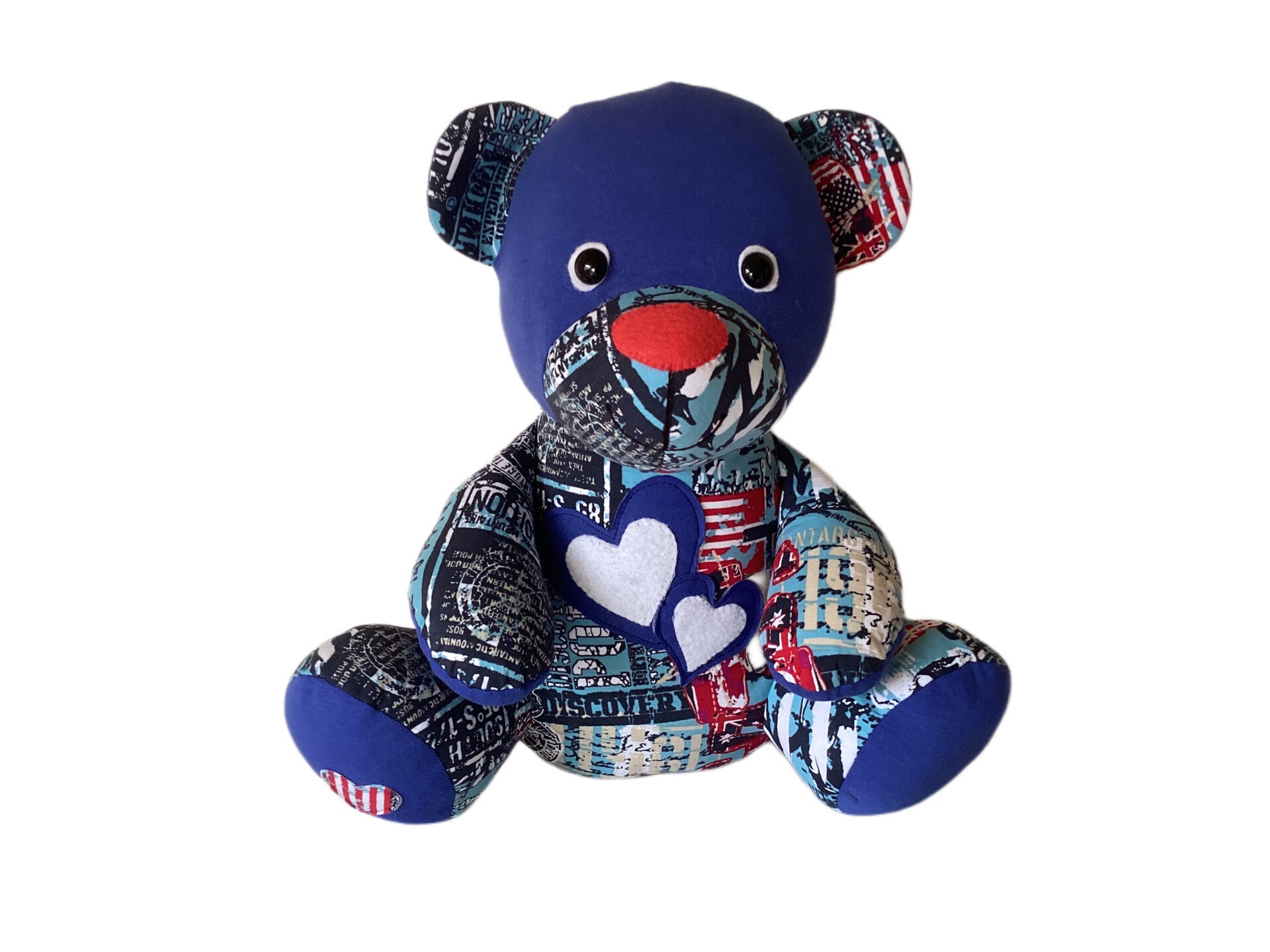 Bas is zittend 30 cm hoog. De stof is tricot. Bas wordt graag geknuffeld en vindt iedereen lief.